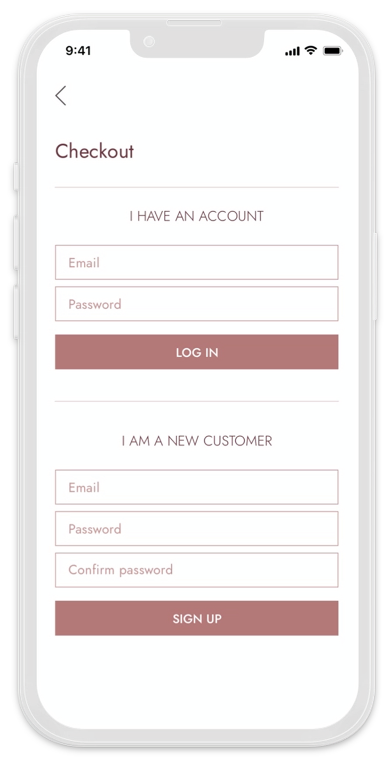 Returning users can log in to their accounts to complete their purchases, while new customers are provided with an option to sign up. New users can then enter their delivery details to complete the purchase.