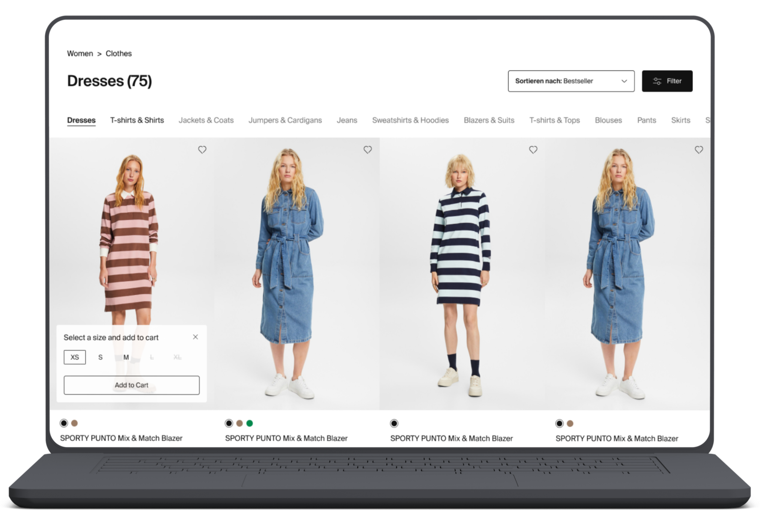 Project Overview: Optimise the quick shopping experience for users on the ESPRIT website so that items can be added to their carts directly from the Product Listing Page (PLP).