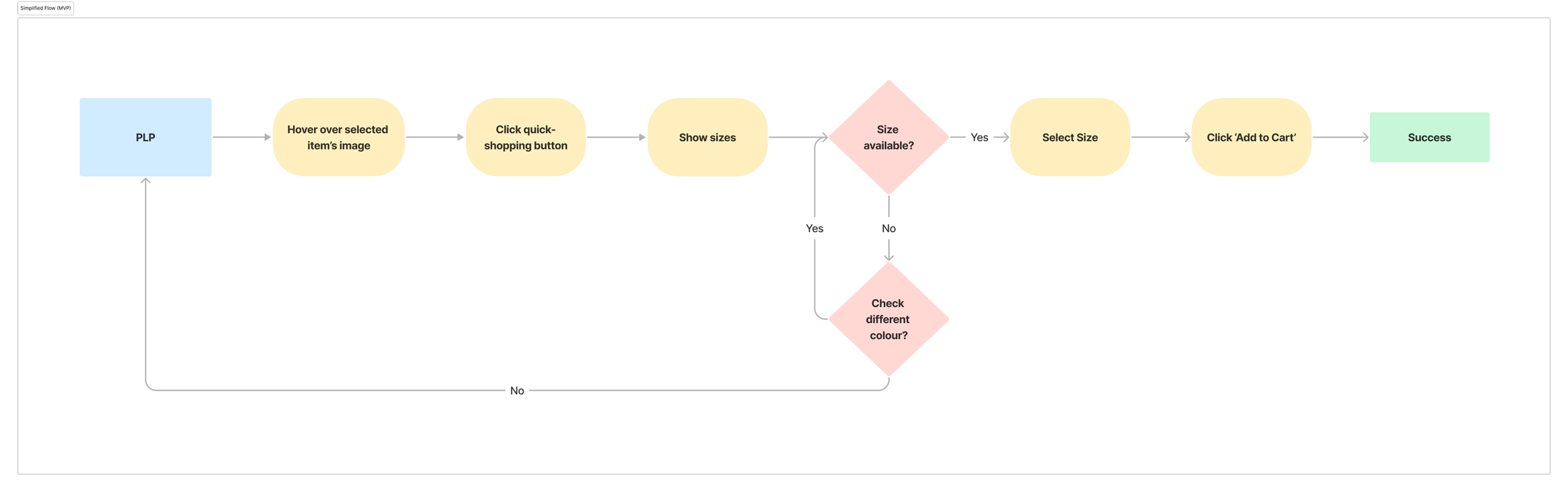 To define the most efficient shopping experience, we mapped out the user journey of the Quick Shopping feature in a user flow diagram: